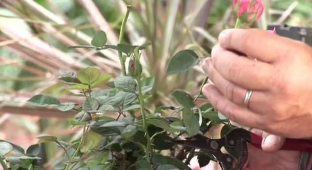 月季,如果你发现它的叶子变红,顶部已经不生长了,这个时候我们就可以给它修剪了,因为它现在带着叶子修剪不会造成伤流的情况。