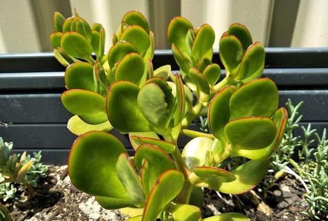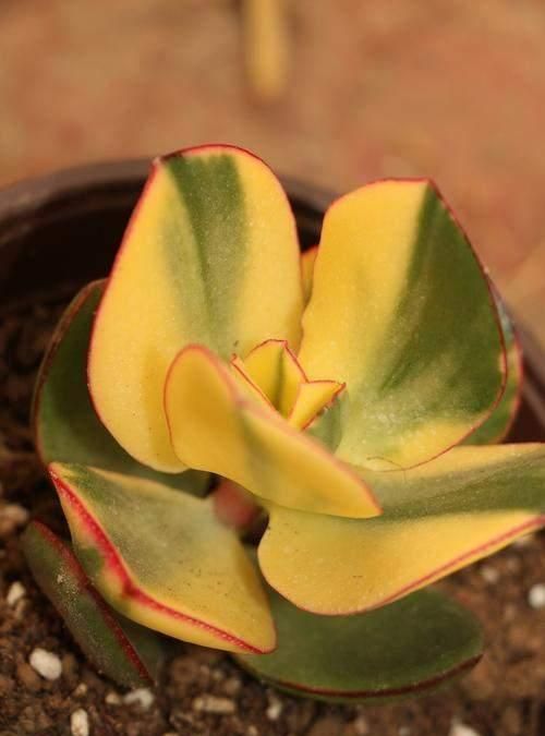枝干生长容易木质化的黄金花月,成熟的株形是树状的,不过株形并不高大。其叶色通常为绿色,若是光照充足,其叶子的边缘会变成红色,叶片整体为金色的,这也是它名字由来。