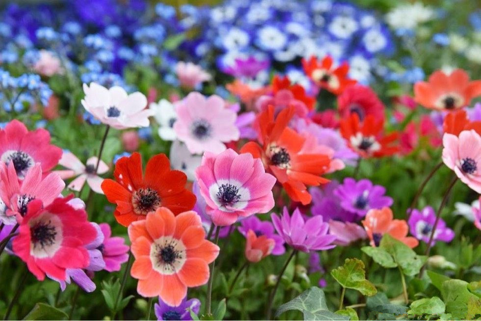 银莲花属于球根植物,和风信子、郁金香等类似,都需要在较低温的环境下才会发芽生长,秋冬季节是最适合种植的,把种球埋土里就行,浇点水,发芽后置于阳光下,按照传统绿植养护方法管理就行了,现在栽下,约两个月就会开花。