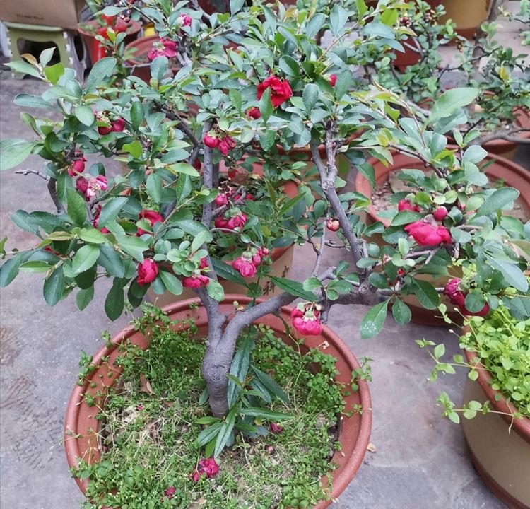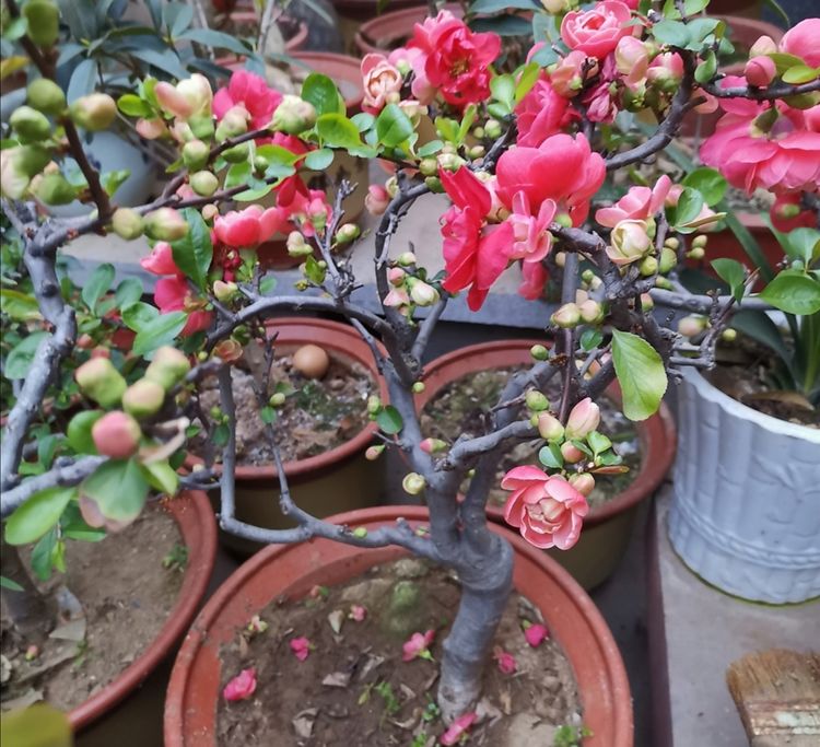 贴梗海棠是开花非常漂亮的花卉,而且养护起来也简单,很多花友还会把它制作成漂亮美观的盆景,到了花期开花能与梅花相比美。