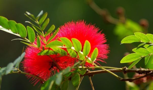 红绒球与合欢花有点相似,但其株型比较紧凑,适合盆栽或灌木的小型种植。它的花像一个大绒球,果实也很吸引人,观赏价值很高。喜温暖潮湿的环境,光照充足时,鲜花盛开,需种植在排水良好的微酸性土壤中。