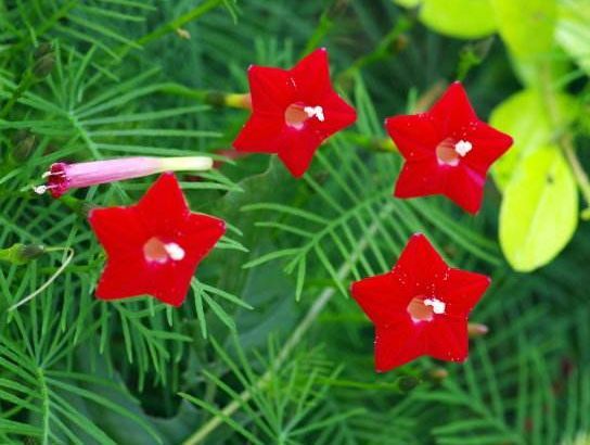 茑萝是观赏性好、开花效果好的攀缘藤本植物。它的花看起来像星星。荚荚属植物种类繁多,生长速度快,喜光、温、湿环境,抗逆性强,管理简单,由于牵牛花。只要温度适宜,就可以四季开花。