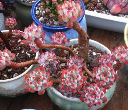 这种多肉植物十分的俏丽玲珑,但是很容易养护成老桩,尤其是夏季的时候养护的过程中,注意控水,几乎是2、3个月的时间就能让茎干出现半木质化。