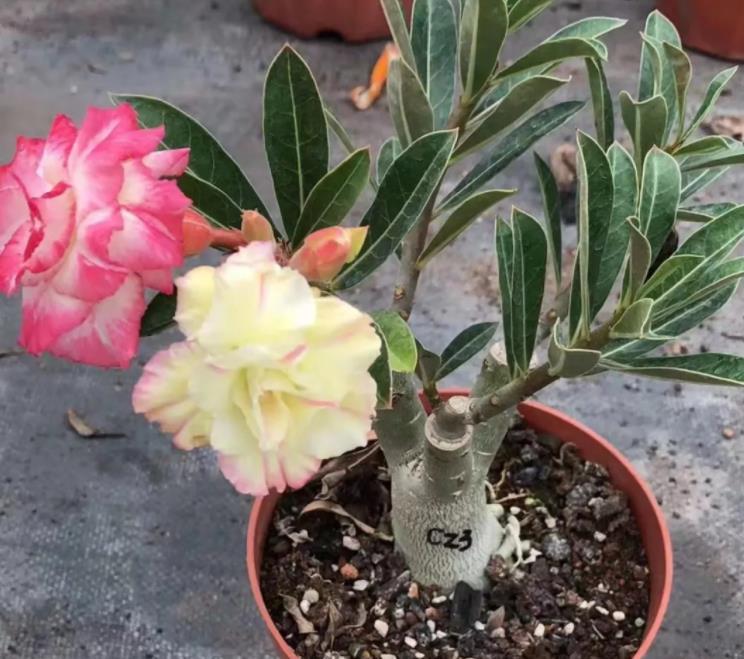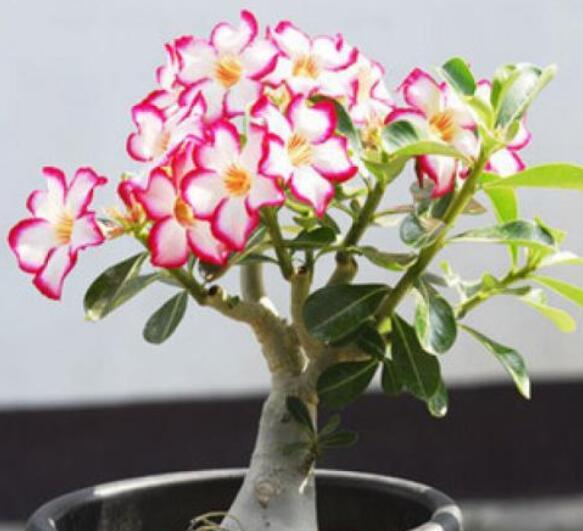 在花卉市场,沙漠玫瑰一是都是很抢眼的一个品种。它也叫天宝花,是因为这植物属于夹竹桃科,天宝花属的品种。在观赏价值上,沙漠玫瑰的植株虽然不大,但是树形苍劲很有生机,再加上花朵鲜艳美丽,所以很受大家的喜爱。而且养护过沙漠玫瑰的人知道,此花一年能开两次花。因此很值得我们养护。