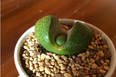 栽培提示:帝玉原产南非,适宜凉爽干燥和阳光充足的环境,耐干旱,怕积水,怕高温,稍耐寒。具有冷凉季节生长,高温时休眠的习性。生长期应给予充足的阳光。冬季控制浇水能耐5℃甚至更低温度。夏季休眠期注意通风,避免烈日暴晒和雨淋,严格控制浇水。适宜在疏松透气,具有良好排水性的土壤中生长,可用粗沙或蛭石加腐叶土或草炭土混合配制,并掺入少量骨粉。栽培帝玉的最大困难在于帝玉的休眠期特长,在一些地方,从5月下旬子f始进入休眠直至9月中旬结束。在此期间只要稍一疏忽就会腐烂。除了加强遮荫通风外,应彻底断水。老叶任其萎缩,力争保住一对叶子。开花后抵抗力迅速减弱,虽然它不像有些种类那样花后即死,但度夏时会十分困难。因此如不是为了采收种子,一出现花蕾就应摘去。培养土宜用四分之三沙子加四分之一腐叶土。繁殖用播种,小苗阶段抵抗力较好,有时在基部会出现侧芽可掰取扦插。景天科