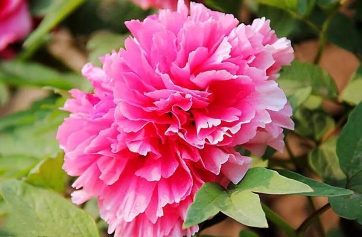 珊瑚台珊瑚等花型,花瓣层叠如云,菏泽牡丹园于1970年开发出这一新品种,命名为珊瑚台。珊瑚台花为冠型,花为浅红色,基部为深紫色斑点,内皱,排列紧密而膨大。叶深绿色,盛开花朵,也早开花,香气扑鼻,芬芳溢溢。观赏价值极高。