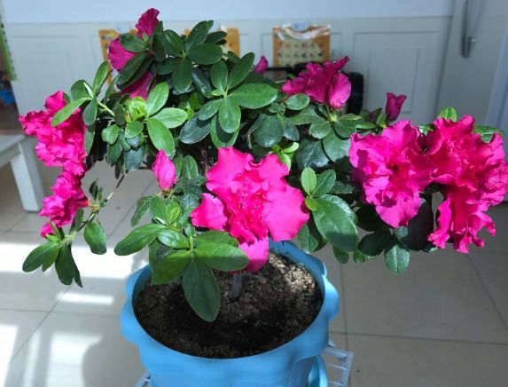 西洋杜鹃大家都很喜欢,开花勤快,一年能多次开花,但是以欧洲品种为主的西圈普遍不耐高温,不能适应阳台环境,30度以上的环境度夏必死,妥妥的空调花!那在养这类杜鹃的时候,一定要注意,通风最重要,通风好了盆土干湿循环快,不容易闷根烂根,风随便吹,即使天天浇水都没问题。如果通风不好,哪怕是窗子开着又能怎么样,水大了会烂根,眼看着挂掉没商量。另外不能暴晒,小苗弱苗一定要遮阳,壮苗大苗有充足的散光即可,晒得狠了温度高,根系受不了,夏天有空调的就搬到空调房间养,但是空调房间通风不好,要每天开窗。