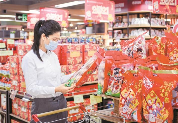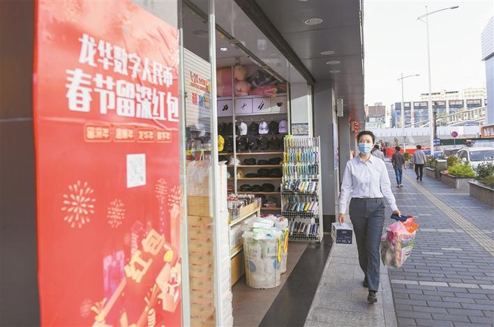 2月4日,在深圳龙华区,徐岩岩拿着用“数字人民币春节留深红包”购买的食品返回养护院。