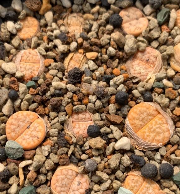 我家的生石花都是用的砂石颗粒去养的,一些粗颗粒的河沙,搭配上火山石跟赤玉土,简单混合,砂石颗粒中加入少量的小白药,小白药的作用是后期杀虫,混合好的砂石颗粒是养生石花最好用的基质土。