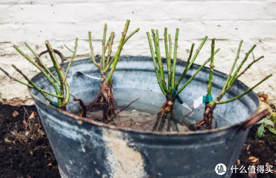 裸根月季经过几天的邮寄,多少会有一点失水,在种植前,应先将裸根月季苗在生根粉水里浸泡,补充水分的同时,生根粉也能让月季提前发新根。如果没有生粉,就只浸泡清水,一般浸泡30分钟左右就可以了。