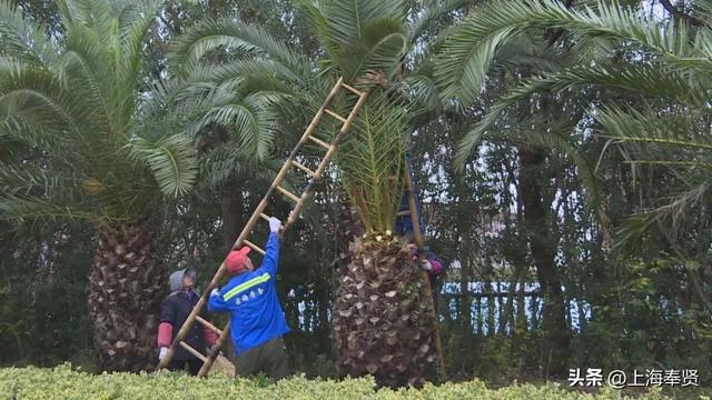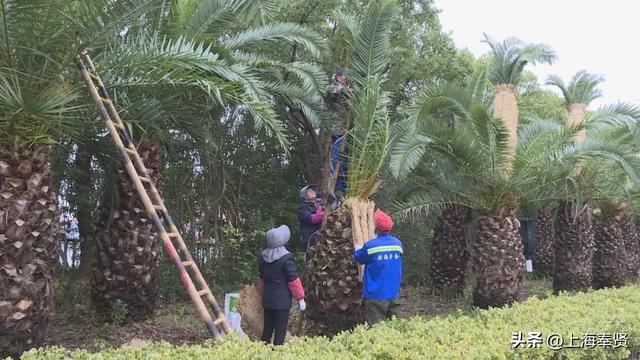 “每年我们都在12月25号之前,把这个加拿利海枣树全部防寒保暖工作做好,让它健健康康过冬。”树木养护项目负责人张银华告诉记者,今年寒潮来得早又突然,趁着天气不下雨,工人们就马上开工,用草包把加拿利海枣树的核心嫩叶全部包起来,保持透气保暖。