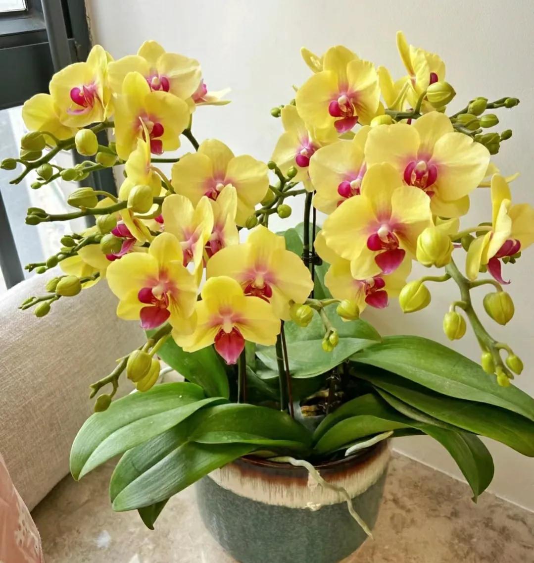 蝴蝶兰是比较著名的年宵花卉,花朵很漂亮,犹如蝴蝶悬挂在枝头翩翩起舞,花量密集,一棵蝴蝶兰都能开出几十甚至上百朵花。但是养护蝴蝶兰需要较高的技术,一般的花友很难把它养好,动不动就会出现闷根、不开花的情况,如果你的经验不足,尽量不要买蝴蝶兰。