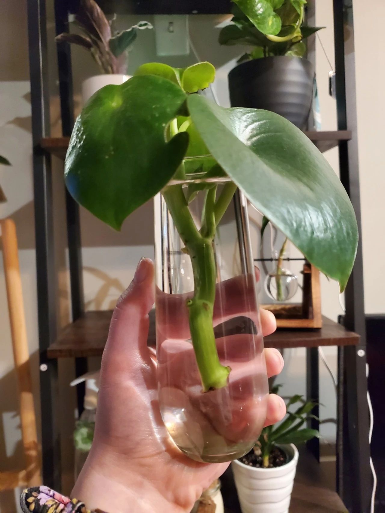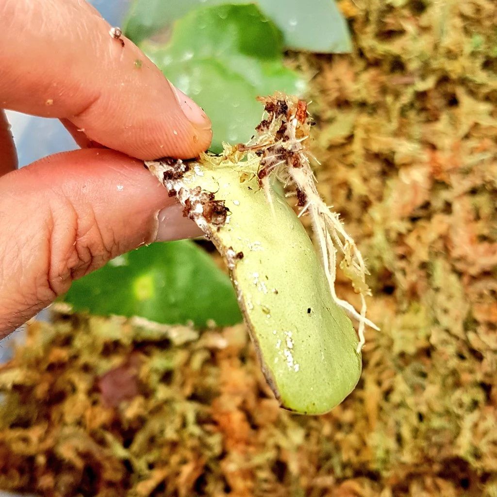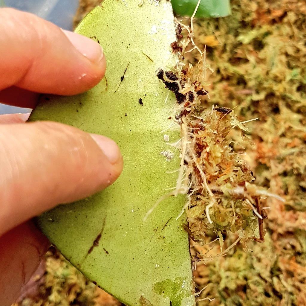 如果有耐心,还可以尝试给荷叶椒草进行叶插繁殖,可以将它饱满的叶子剪下来,叶柄保留一半以上,叶柄底部浸泡在水中,同样养在有散射光的地方,保持温暖的环境温度在18~45度之间,大概三四周之后底部就会长出小根系,后续会慢慢冒出小芽。