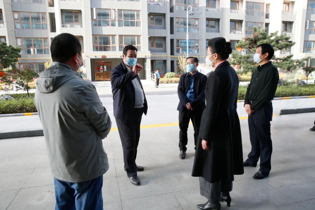在信阳市民政局副局长易新生、养老服务科科长林志刚及羊山新区民政部门领导和华信圣德健康集团总经理程红、副总经理冯伟的陪同下,张正德一行来到圣德养老中心门前,仔细检查门岗值班和出入扫码、测温、登记等情况,并深入到物流出入口查看生活物资配送流程、垃圾处理等管控措施落实情况,向工作人员询问分区分类管理、各岗位疫情防控职责及要求、封闭期间如何对入住老人进行关爱服务等。