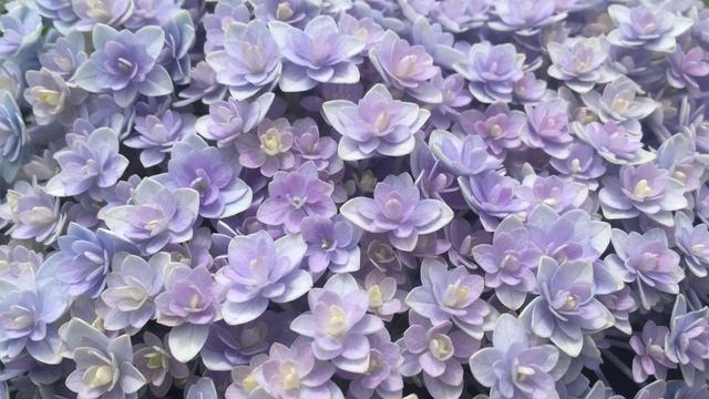 要说到绣球花的颜值,佳澄这个品种的绣球花可以养上一盆,它是一个重瓣的品种,优点是生长速度很快,而且新老枝都能开花,开花的能力能和无尽夏较量一下,至少我知道的,很多养了佳澄的花友,在秋末还能看着它们在不停的开花。