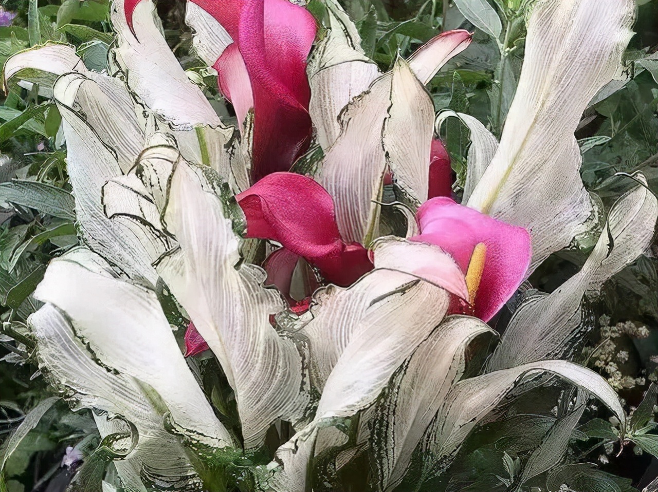 马蹄莲花也是一直都非常的有人气,而有一款冰雪女王马蹄莲更是打破了人们的常识,一经出现,就获得了超高的人气,它的叶片是半透明的,能很清晰地看到叶脉,紫色的花朵仙气漫漫,非常迷人,非常值得养上一盆。