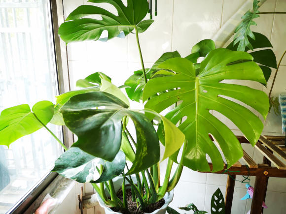 室内养绿植最不可缺少的就是龟背竹,如果想让你的客厅更富有热带雨林的感觉,在对植物的选择上,一定要选择叶子宽大的品种,目前市面上所销售的植物龟背竹跟芭蕉这两种植物的叶子是最大的,其次就是滴水观音,龟背竹的价格比较便宜,适合放在卧室,客厅,养殖龟背竹需要经常喷水保湿,高湿度的环境有利于它生长。