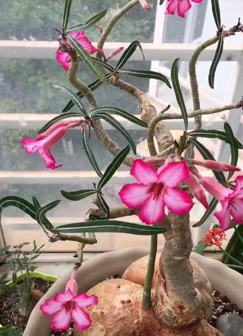 沙漠玫瑰跟发财树一样,超级耐旱,它有个大大的肚子,储水量超强,所以冬天基本上也是一个多月浇一次水;如果你家温度特别低,低于10度,就直接给它断水吧!因为傻妹真的很不耐寒,低于15度可能就休眠了,休眠期间再浇水不是要它的命吗?