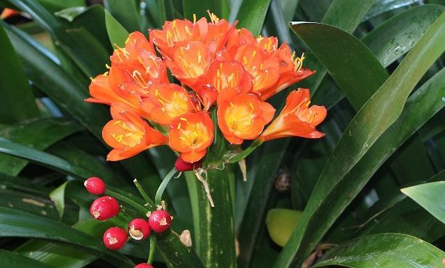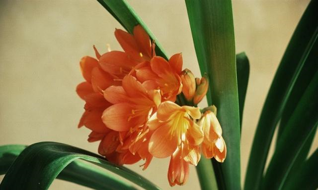 3、要有低温养护的过程君子兰虽然不是一定要春化才能开花的植物,但春化绝对能提高开花率和开花质量。所以冬初的时候,最好将君子兰养护在10度以下的低温环境中,同时控水,促进花芽生长。低温养护时间应不少于30天,这样就能大大提高君子兰开花的可能性。4、注意温差经过低温春化的君子兰,移到10~25度的环境中养护,注意保持10度左右的温差,就比较容易长出花箭了。要是君子兰没有低温生长的过程,室内温度也是24小时几乎一样,就不利于君子兰开花,即便花箭抽出,也容易夹箭,影响开花质量。