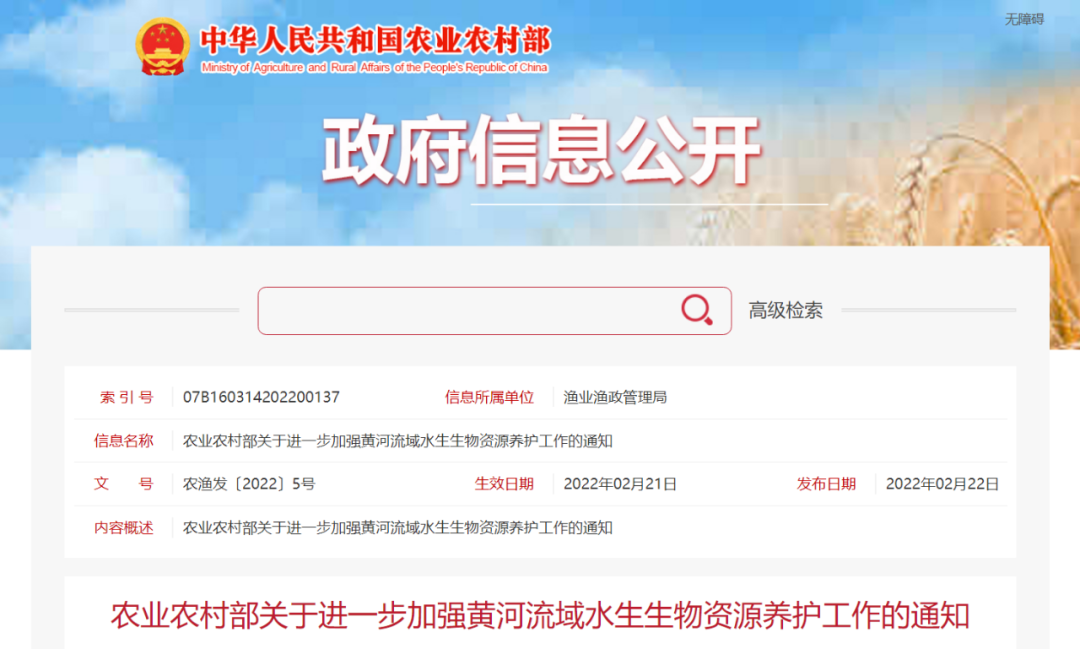 此外,我部将于近期召集沿黄九省(区)农业农村部门召开黄河流域水生生物资源养护工作部署会,举行黄河禁渔专项执法启动仪式,部署开展黄河水生生物资源和生态环境调查,加强《通知》执行力度,保证《通知》各项措施落实落地。