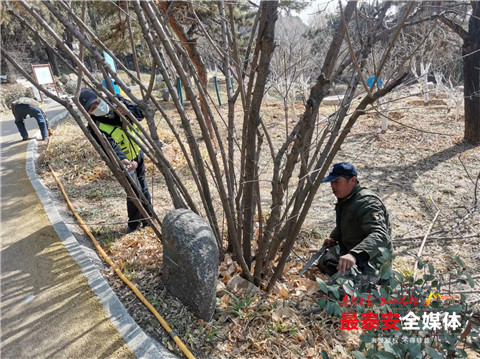 随着气温逐渐回暖,虎山公园内的植物进入开花、发芽抽叶期。为着力提升公园绿化景观效果,近日,泰山景区虎山管理区抓住春季有利时机,开展了虎山公园春季养护工作。