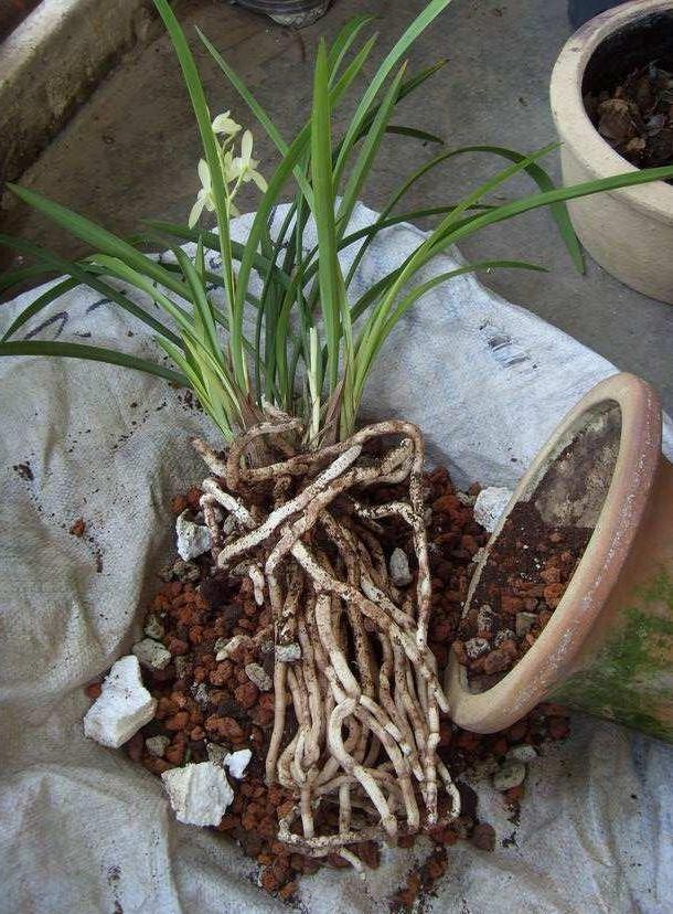第二步:修剪兰花的根部后,一定要将其浸泡在多菌灵溶液中进行消毒,然后将其放在阴凉通风的地方,让其根部风干,待伤口结疤,然后将其植入准备好的花盆种。对于盆栽土的制备,最好使用一些颗粒较大,营养丰富的土壤,如树皮和泥炭土,或腐殖质土等,舒适又透气。这样的土壤呈微酸性,最适宜兰花生长了。