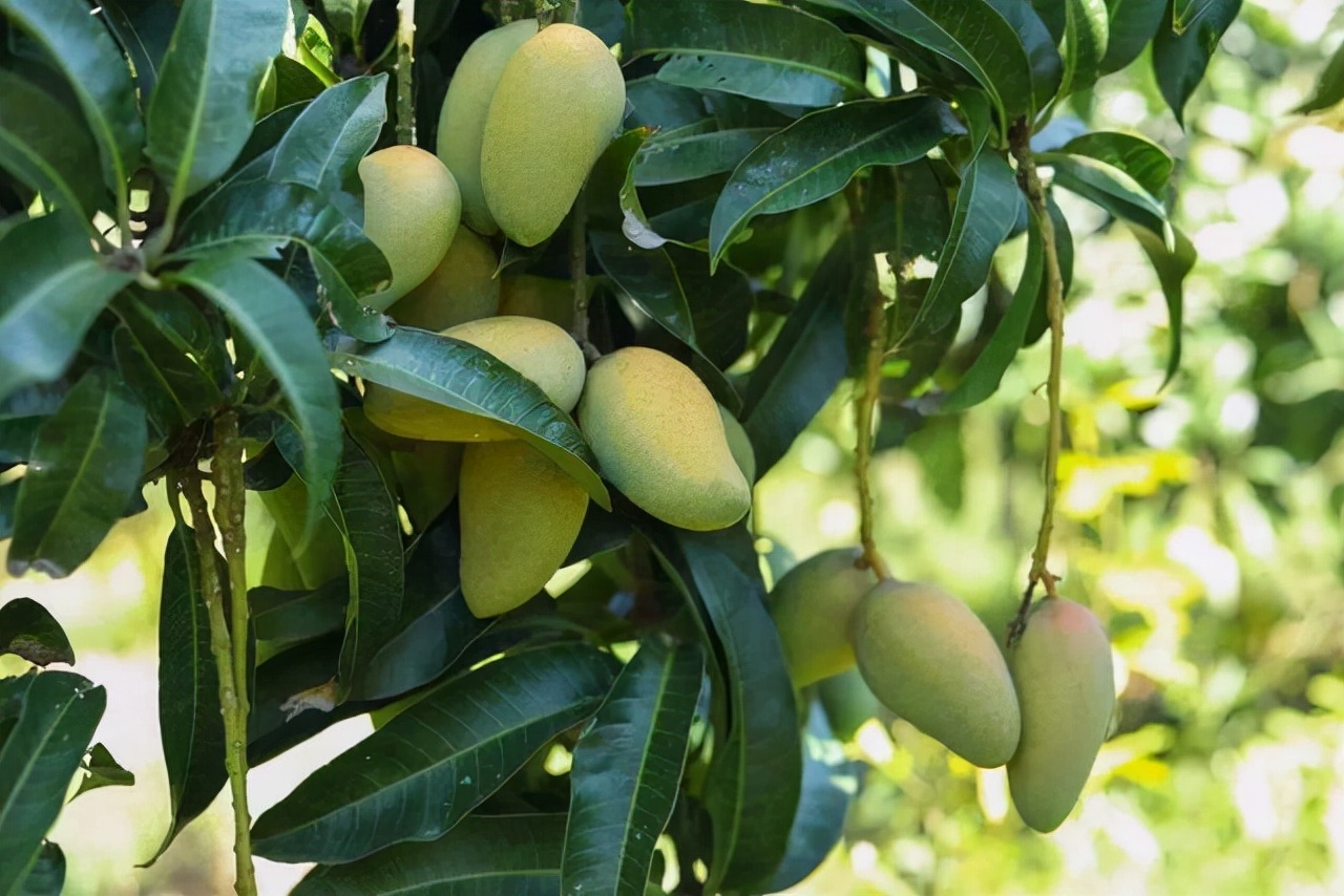 那么,按照它的生长习性,需要把它摆放在光照充足,温暖湿润的环境中养护,它就会快速地生长,等到成株后,自然就会结出一个个的芒果来了,吃货们看到这里是不是有劲了?想吃就种上几盆吧,记住,芒果树一定要成年才能结果的哦,扦插苗要好几年才能结果,在开花结果期间,记得用磷酸二氢钾,方法和上面说的类似。