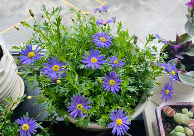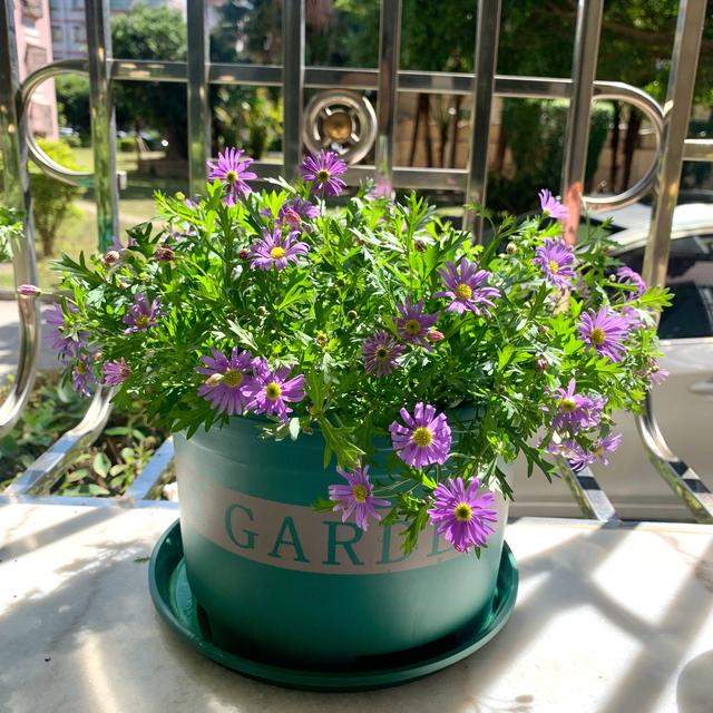 姬小菊在封闭阳台上也可以养好它,就是一定要多晒太阳,其实只要封闭阳台只要阳光,它就可以生长旺盛,照样开花不停了。真的可以做到全年都是花期,花量还是不小的,每天都能看到小小的蓝紫色花儿盛开,这种心情真好啊!