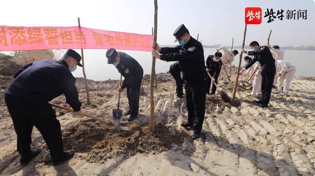 当天,扬州边检站民警与江都开发区机关团委、扬州中远海运重工公司、江都海事处等单位人员,来到江都区佘坂码头开展“警地共建,保护长江”植树造林活动。活动准备了100余棵柳树苗,挖坑、铲土、扶苗、培土,植树过程中,大家协同配合,认真细致,完成好每一个步骤。“挖坑时,中间留下一小堆土,这样树才能立起来,树苗也更容易成活。”为了确保成活率,民警们请来树农现场指导,并将个人二维码挂在树上,落实个人养护责任制。