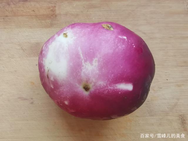 第二步:圆茄子洗干净备用。茄子的营养成分很丰富,含有蛋白质、维生素以及钙、磷、铁等多种营养成分。可以防衰老以及降低胆固醇保护心血管等等,可以说是“血管养护王”也是药食两用的一种蔬菜,经常吃对于身体好处多多。