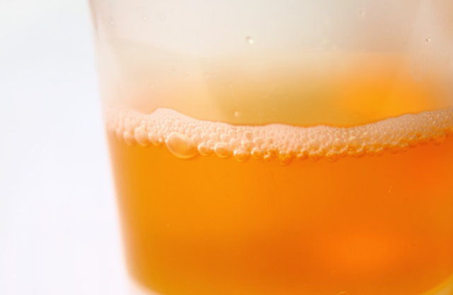 尿液泡沫变多,长时间不消失;尿液颜色异常,呈浓茶色或混浊如淘米水。