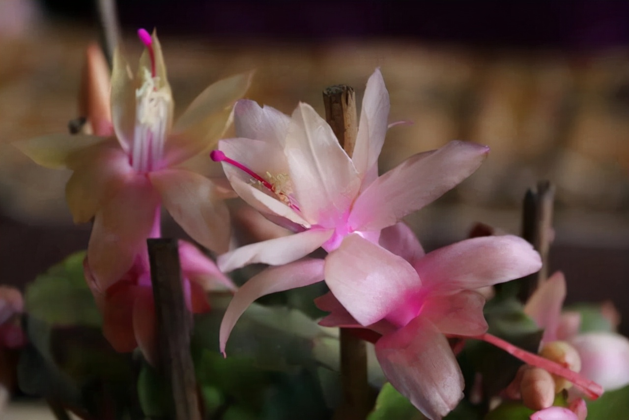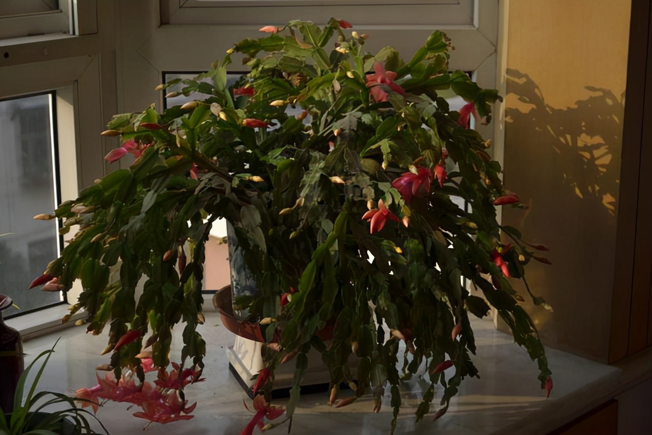 还有一条也很重要,就是蟹爪兰的花期到来之后,它养护环境的温度不能太低,最好保持在10℃以上,最高不要超过18℃,温度太高或者太低,多会大大的降低开花时间。这种现象很明显,温度要是太低的话,还会掉花苞,叶片低垂萎蔫。温度高了,花朵没几天就凋谢了。所以,秋冬季想要蟹爪兰生长好,开花旺盛,需要把温度控制在10℃到18℃之间即可。
