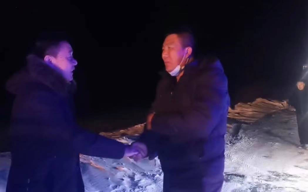 从辽宁来锡林浩特的司机刘金刚拉着锡盟交通运输事业发展中心副主任李化臣的手说:“太感谢咱们锡盟交通部门了,谢谢你们的援救,你们真是我的亲人啊!”