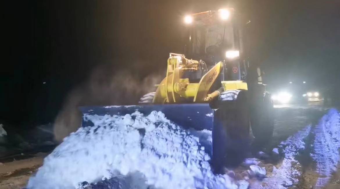 锡盟交通运输事业发展中心调动锡林浩特市公路养护中心,第一时间响应,派出了装载机和保障车辆,装载机一边行进一边对积雪路段进行清理,以每小时35公里的速度前往救援地点,在凌晨十二点赶到了雪阻现场。