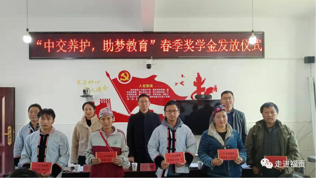 百年大计,教育为本。随着春季开学日期的临近,近日,米俄洛村举行“中交养护,助梦教育”春季奖学金发放仪式。福贡县委常委、副县长孟开醒出席仪式并讲话,石月亮乡党委政府相关负责人主持仪式。