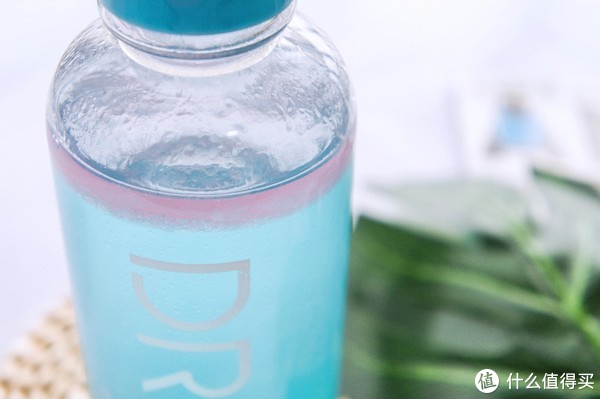 靠近瓶口位置可以看到有一圈淡粉色的油脂层,这层就是精油层,内含日本柚子精油、美国椒样薄荷油与尤加利精油等成分,因为采用了微脂囊包裹技术,保持了精华高活性,所以使用漱口水前建议先摇晃均匀。