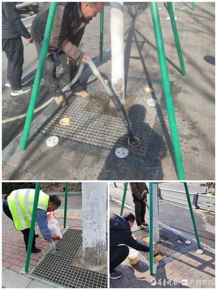 行道树作为市政道路的配套设施,对区域生态环境有着极大改善作用。近年来,高新区高度重视大树复壮工作,为营造良好绿化环境,高新区财投中心制定了科学合理的施肥、浇水方案,努力克服树池狭小、浇水施肥条件有限等困难,针对有通气管的树池,利用通气管进行施肥、浇水,无通气管的树池,利用深根追肥器进行施肥、浇水,对所辖范围内21902株行道树优先浇灌,赶在天气回温、需水量集中之前完成浇水施肥,给植物添加“营养剂”。通过严把技术关、施肥质量关,以确保养分合理摄取,提高植物可抗性,确保行道树健康生长。