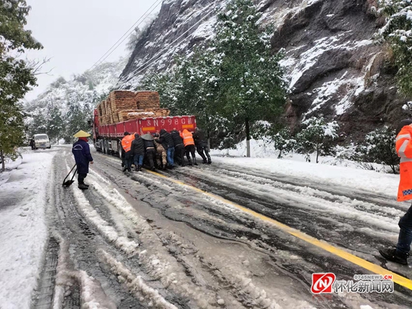 该中心迅速组织人员,出动融雪剂撒布机、铲车等机械设备,采取机械除雪与人工除雪相结合的方式对管养的多条国省干线公路进行不间断除雪作业,在公路急弯、陡坡、桥梁等易发生安全隐患的路段人工铺撒融雪剂、防滑料,并设置安全警示标志,提醒过往车辆谨慎行驶。同时,加大公路巡查力度,由领导带队包片包干进行全线路巡查,并于当日上午10时在G320国道牛岭坳路段,成功把因路面结冰打滑被困车辆转移到安全路段。