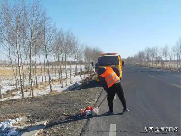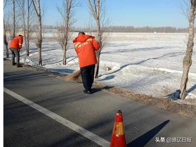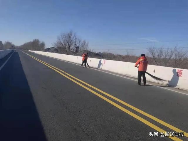 履职尽责,坚守岗位。春节期间,养护职工及时清理路面垃圾,确保公路设施完好,打造畅安舒美公路通行环境。