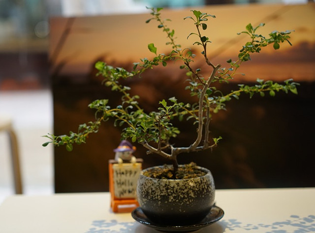 整形时,要将树木从泥盆中移栽到紫砂盆或釉盆中。