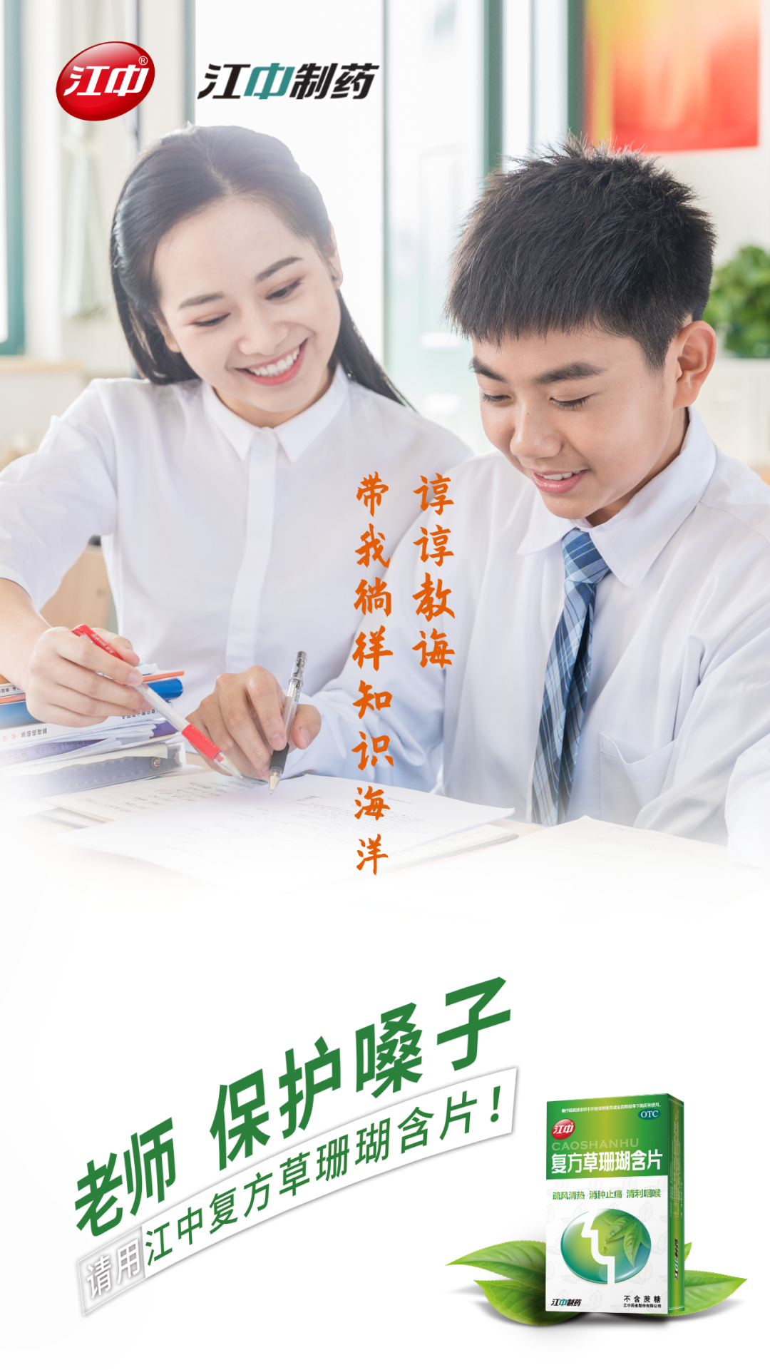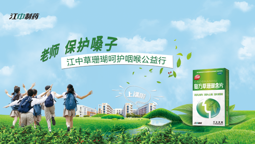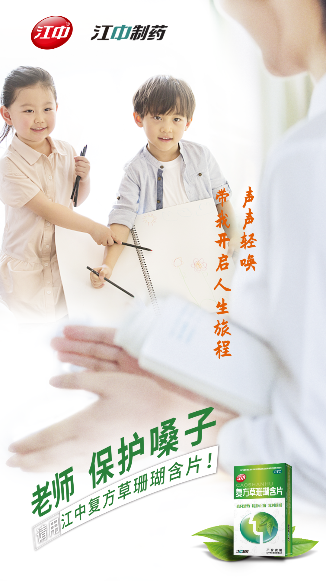 江中牌复方草珊瑚含片,作为全国第一个销量过亿元的中药OTC产品,上市35年来畅销不衰,一直陪伴着教师等重度用嗓人群,呵护他们的咽喉健康。就在即将到来的2021年教师节,江中牌复方草珊瑚含片发起了“老师,保护嗓子”系列公益活动,联合百家连锁药店,走进校园公益捐赠,开展教师节专场直播等,呼吁公众关注老师健康,助力老师日常护嗓。