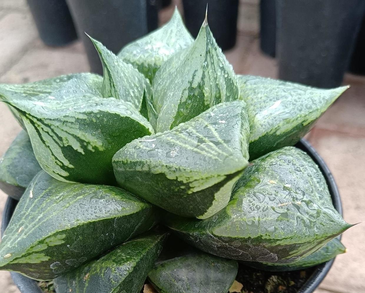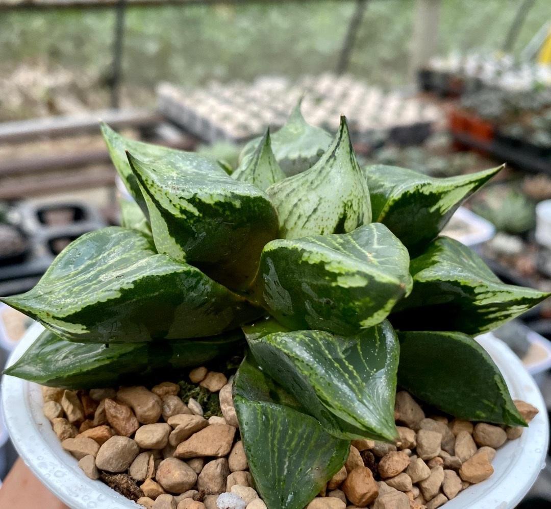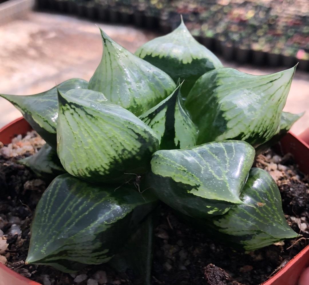 西瓜寿叶子分布并不均匀,叶片要小很多,西瓜寿叶子非常尖锐,外形很有特点,价格要偏高一些,直径7cm的西瓜寿,单棵的售卖,价格就要达到20块,一分钱一分货,价格高的多,颜值自然也不会很低。