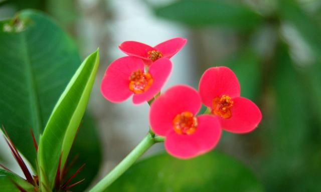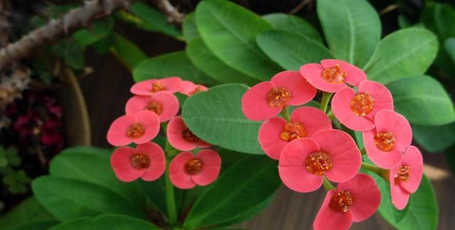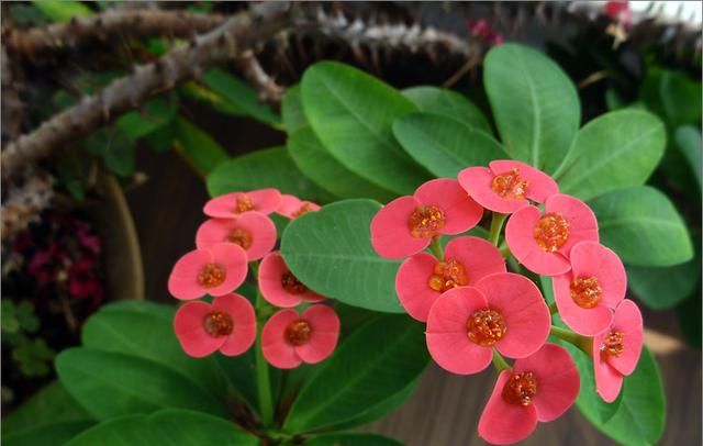 虎刺梅开花是很好看的,每个枝条上都能长出花苞,虎刺梅的花朵很小巧,红色的小花长满枝头,观赏性是很强的,家庭盆栽虎刺梅养护方法也是很简单的,而且只要注意养护,虎刺梅开花是一茬接一茬的,除了冬季,剩下的时间都是它的花期;重点是每次开花都是爆盆的状态,观赏性很强;