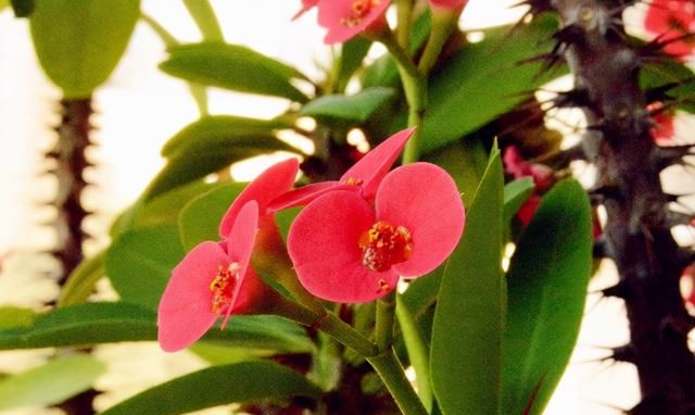 虎刺梅相信很多朋友都听说过,它又叫铁海棠、麒麟花,虎刺梅是一种热带植物,原生地是沙漠一带,在它的原生地能长得很高大,开花的时候观赏性很强,虎刺梅的茎干上长满了尖锐又显眼的刺,平时盆栽的时候一定要注意安全,尤其是换盆的时候,要戴好手套,避免扎破手,手指被砸破很容出现红肿、发痒等过敏症状;