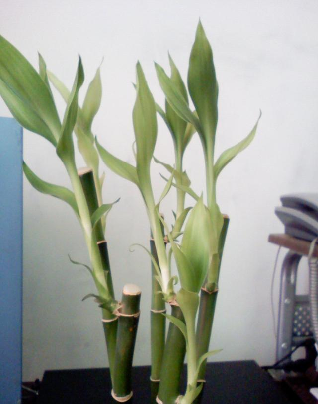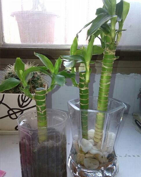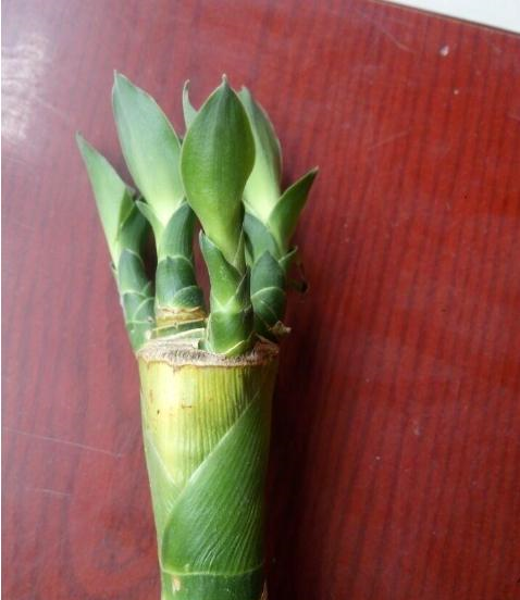 4、新芽维护被截短的富贵竹下面部分新芽一旦萌发长出,就尽快施点肥,让新芽能长得快长得壮。如果新芽长出时缺肥,就会长得瘦瘦弱弱面黄肌瘦,大大影响以后的观赏。另外,有些富贵竹因为植株比较强壮,加上养分供应充足,可能一次性会长出三五个新芽,这时候就要疏芽,把长得比较小的、间距比较密的芽梳剪掉,只留下健康的新芽即可。