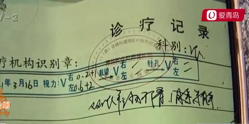 张女士母亲:承诺我们说是可以把视力提高到2.0 1.5,我说也不用2.0,能到1.5,给我们控制好,别再发展了也行。