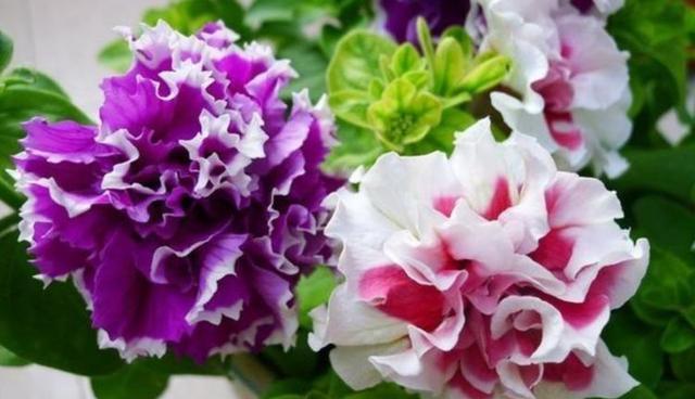重瓣矮牵牛 重瓣矮牵牛花朵层次复瓣,花色丰富,花朵硕大又饱满,和牡丹也有几分相似,花开时繁花锦簇,十分的艳丽,重瓣矮牵牛花期比较长,从四月到十一月都能一直花开不断,矮牵牛喜欢阳光,所以要种在阳光充足的环境,幼苗出土之后要放进光照充足的地方,在成长期的阳光更为重要,有了充足的阳光,播种两三个月就能开出一朵朵花色丰富的花了。