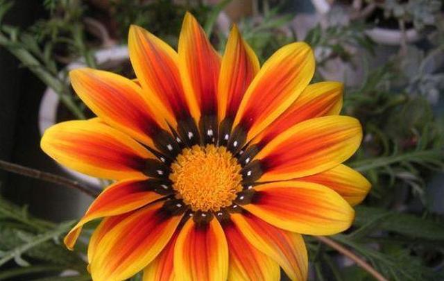 勋章菊 勋章菊的名字来源于它的外形,花心有深色斑点,看上去与勋章十分相像,这种花的开花能力比较强大,一开就是一大盆,结出种子之后可以拿来播种,勋章菊先喜欢阳光,可以放在阳光充足的环境,阳台上,窗台上,有院子的可以种在院子里面,土壤干了浇一点水就行,非常的容易养活。