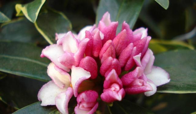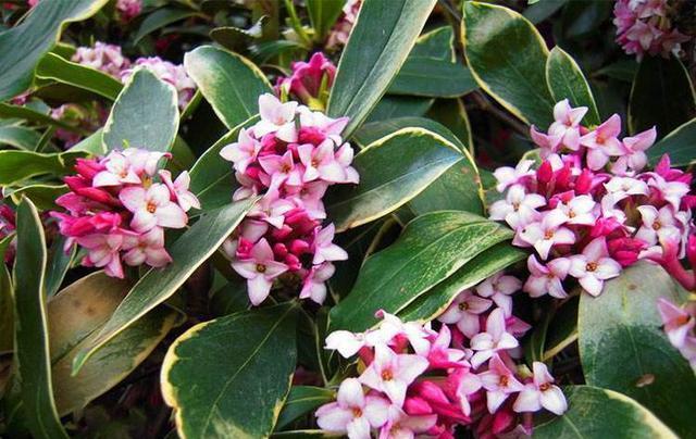 金边瑞香是一种非常常见的盆栽花卉植物,绿色的叶片镶着一层金边,花朵也是非常的好看,一般都是淡淡的粉红色花朵带着浓浓的香味,金边瑞香开花一般在每年的1月份左右,养护得当,花期能长达2个月左右;